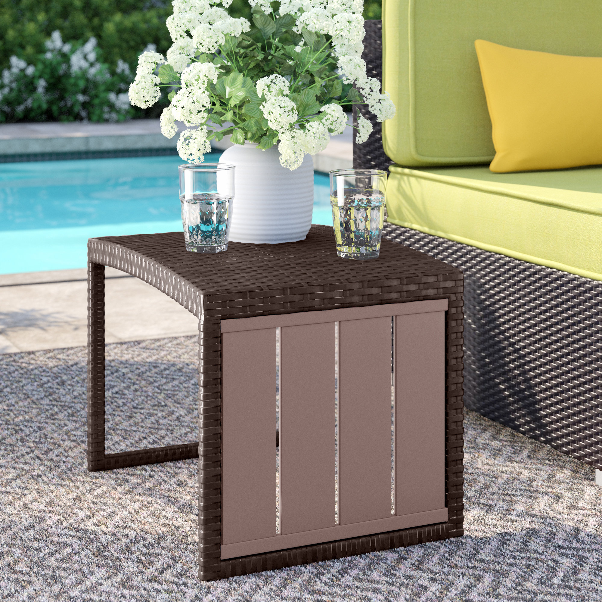 ACEGOSES Skytop Square Wicker Outdoor End Table 20 in W x 20 in L LW