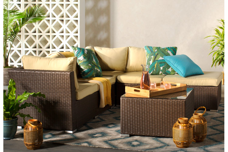 Latitude Run® 5 Person Outdoor Rattan Sectional Seating Group With