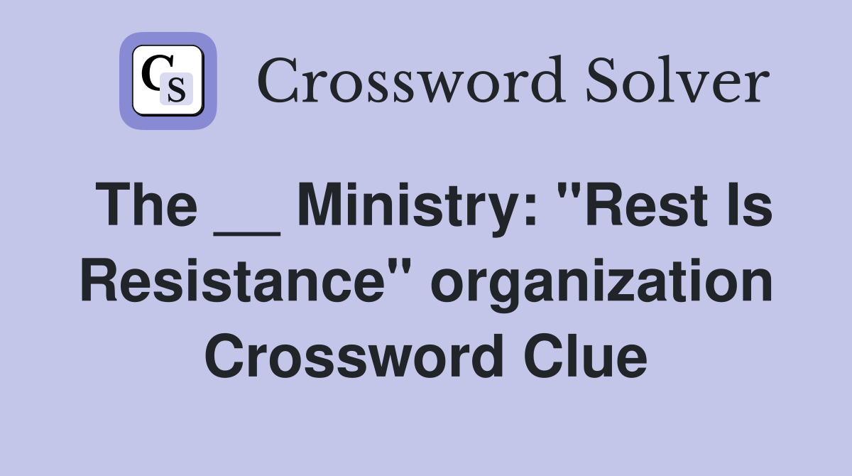 The Ministry: quot Rest Is Resistance quot organization Crossword Clue