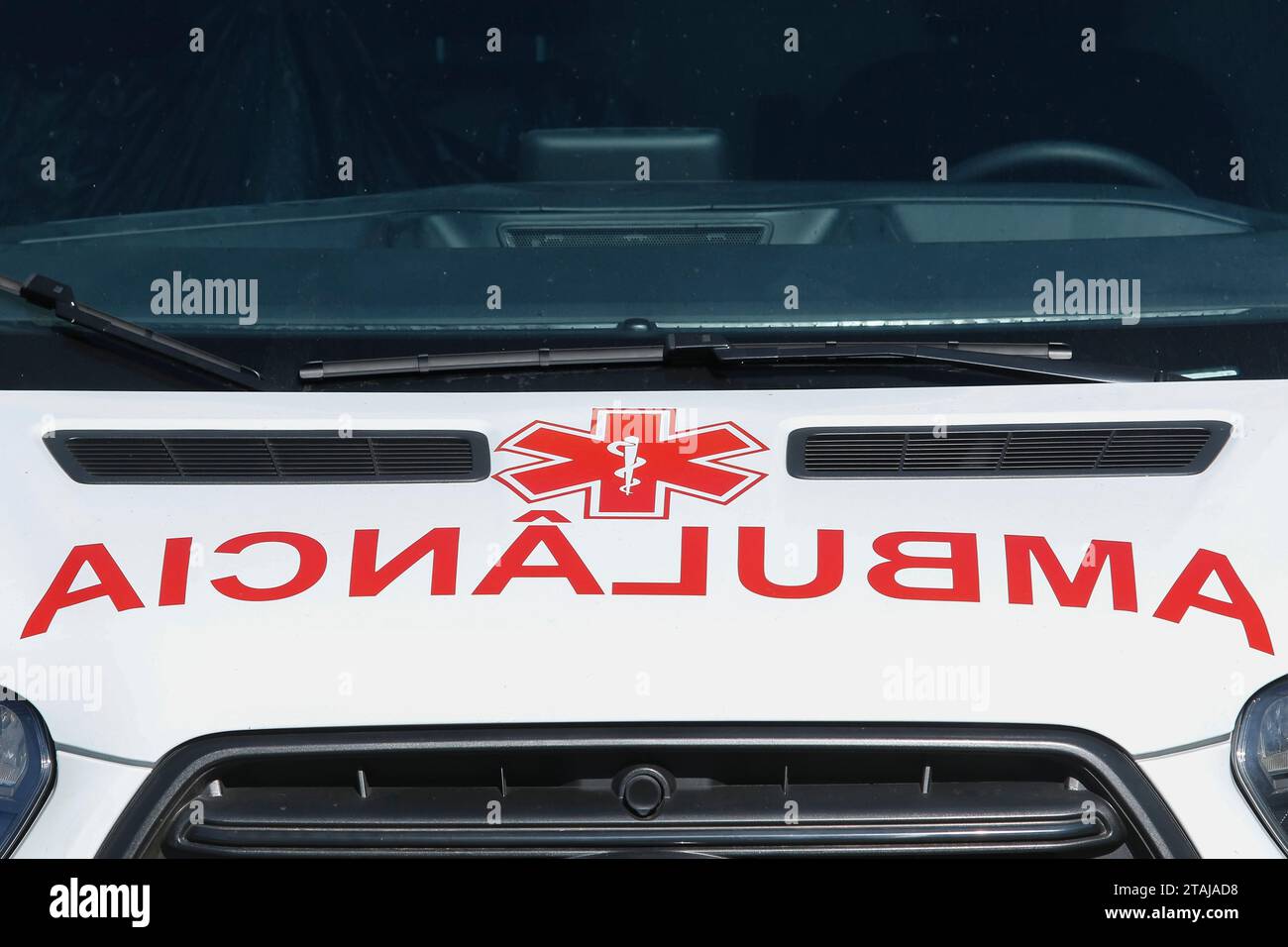 description detail of the generic ambulance car with red letters in