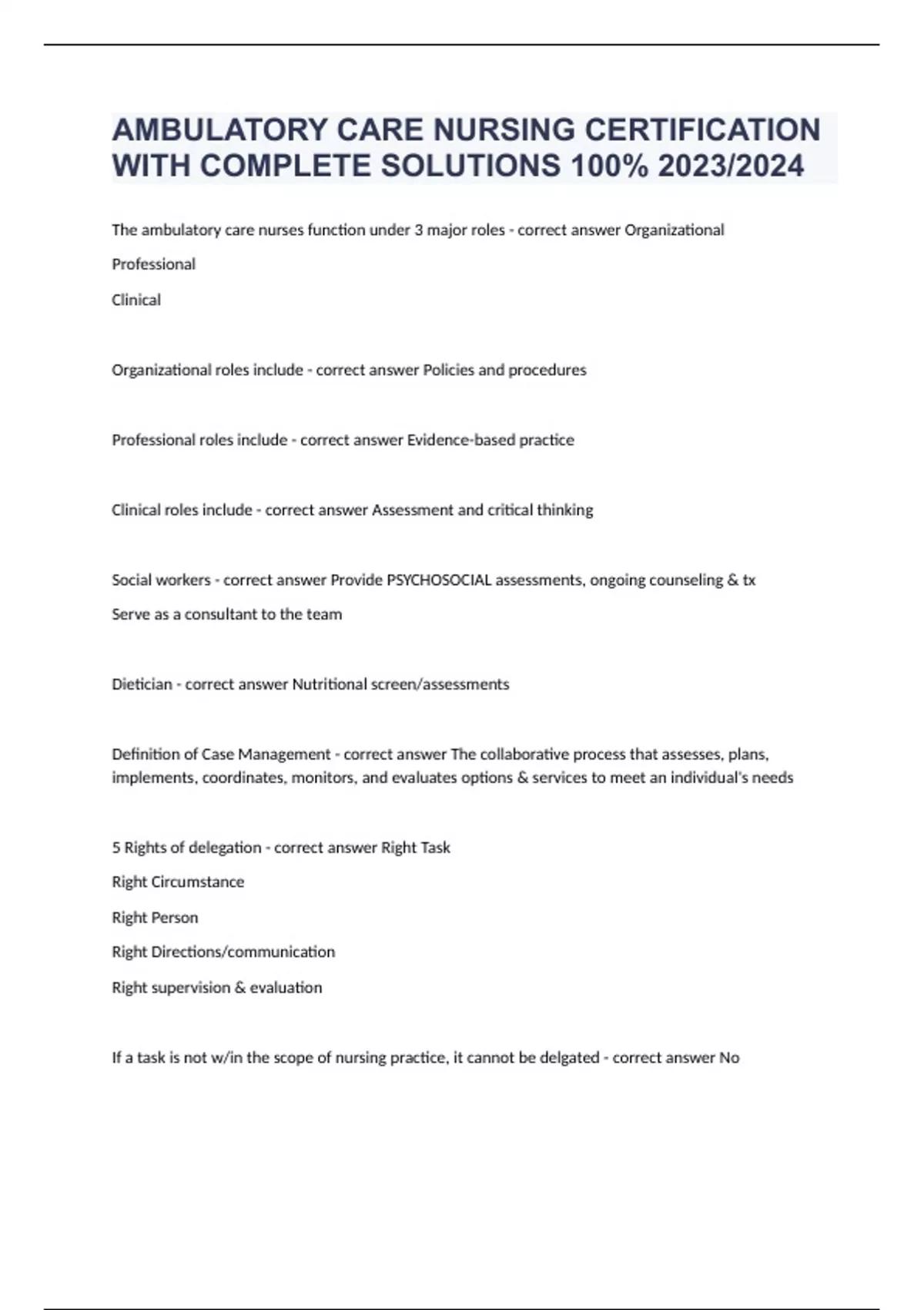 AMBULATORY CARE NURSING CERTIFICATION WITH COMPLETE SOLUTIONS 100% 2023