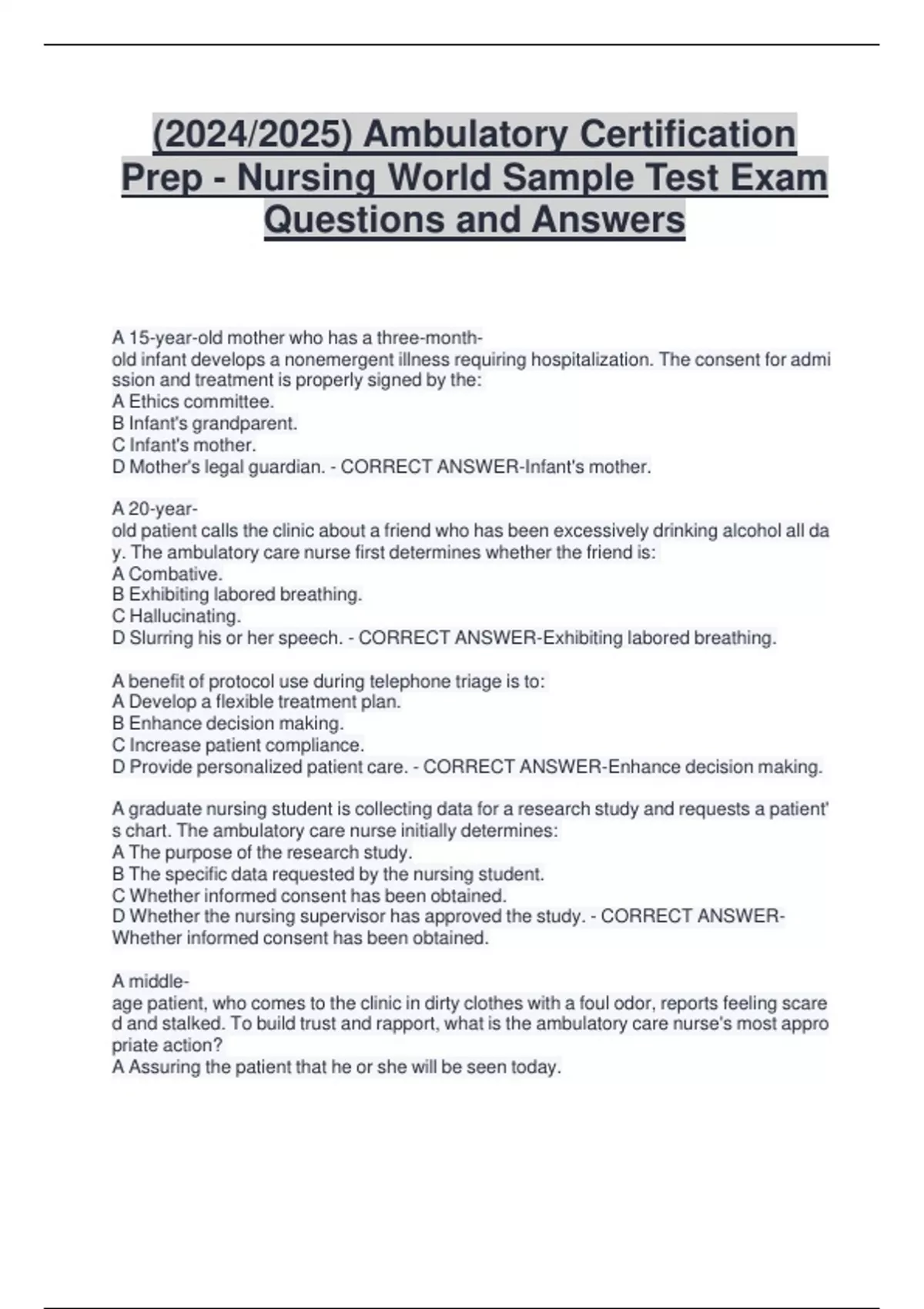 Guide to Ambulatory Nurse Certification Exam Questions and Course Hero