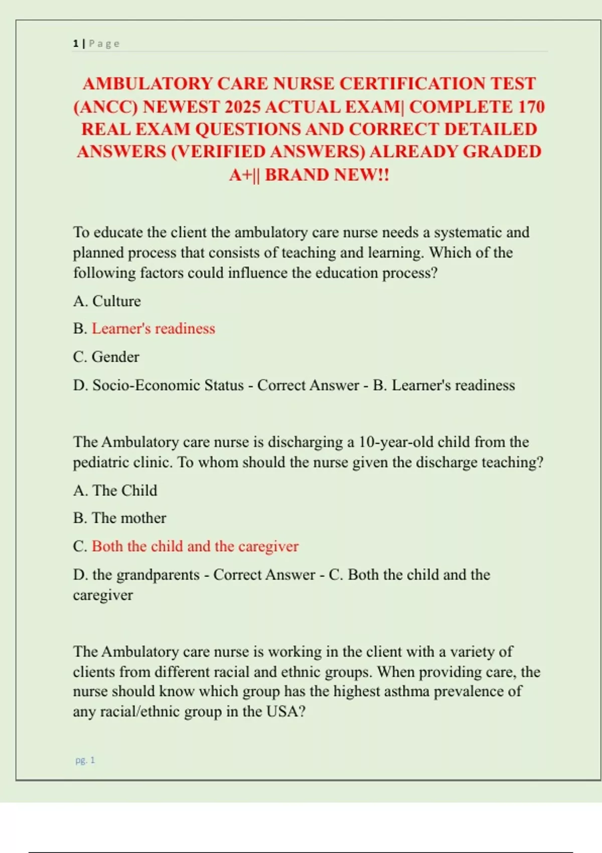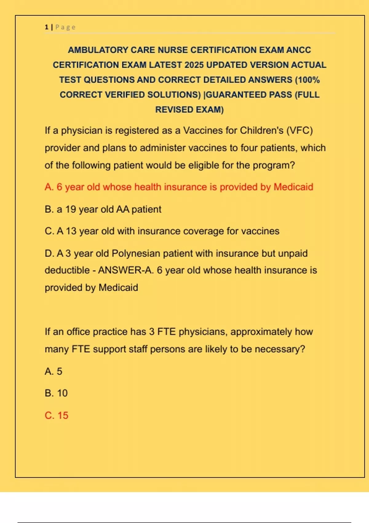 Ambulatory Care Nurse Certification Exam (ANCC) Solved Ambulatory
