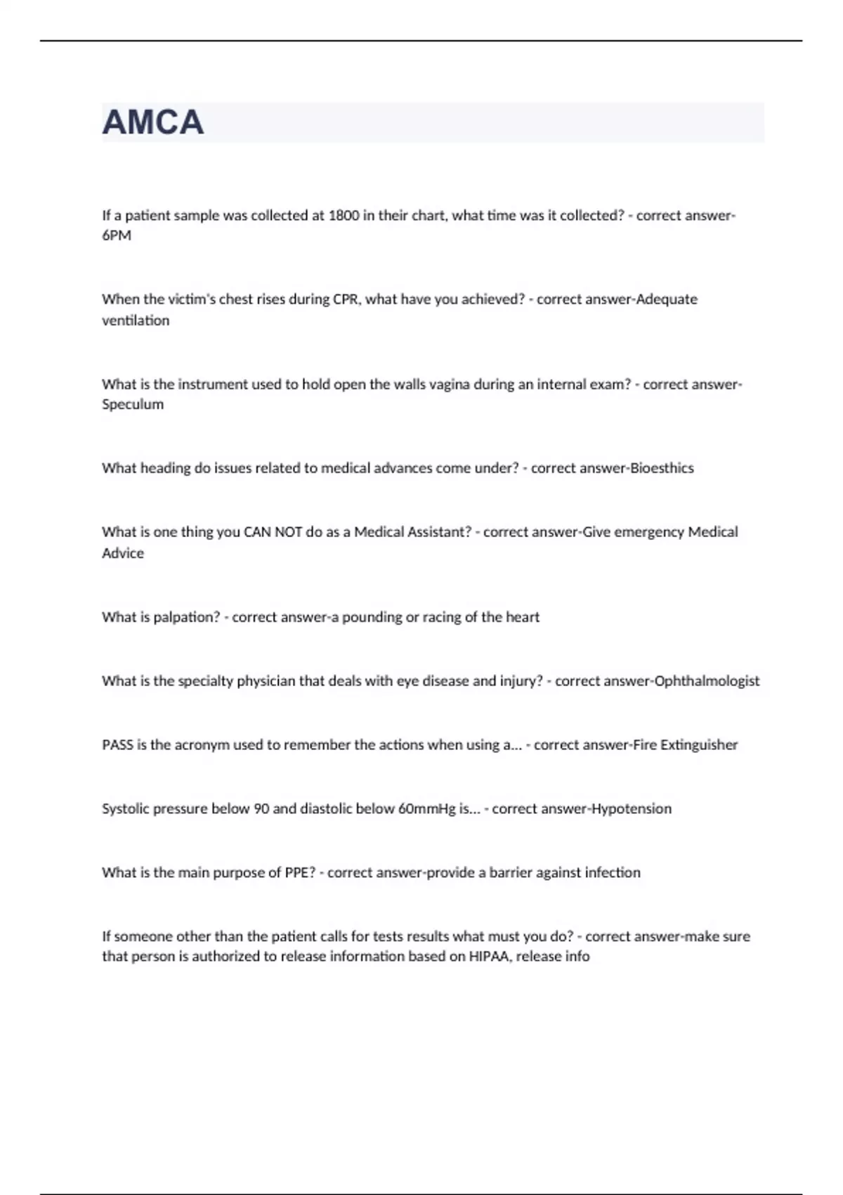AMCA Certification Exam with Correct Answers AMCA Stuvia US