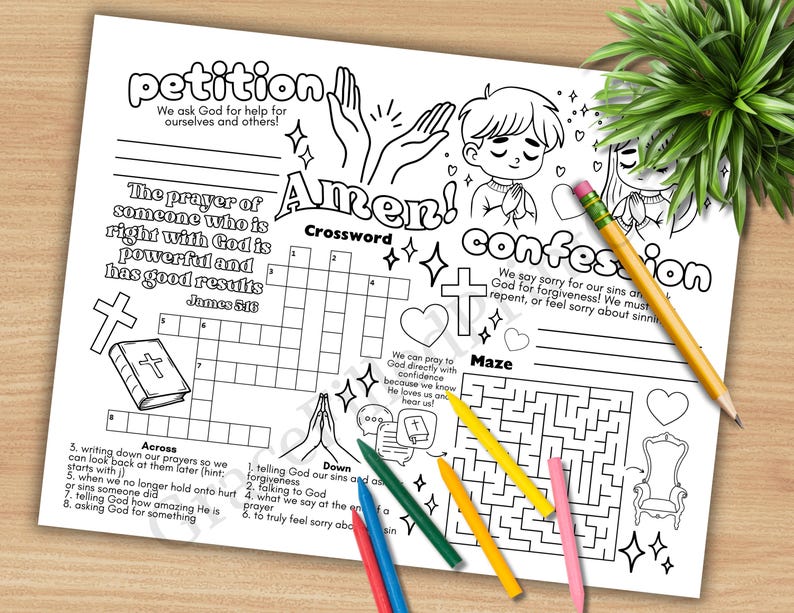 Prayer Educational Activity Placemat for Kids and Teens Biblical