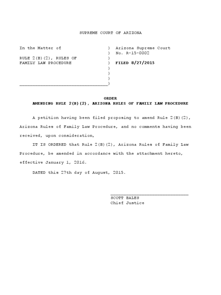 Order Amending Rule 2 (B) (2) Arizona Rules of Family Law Procedure