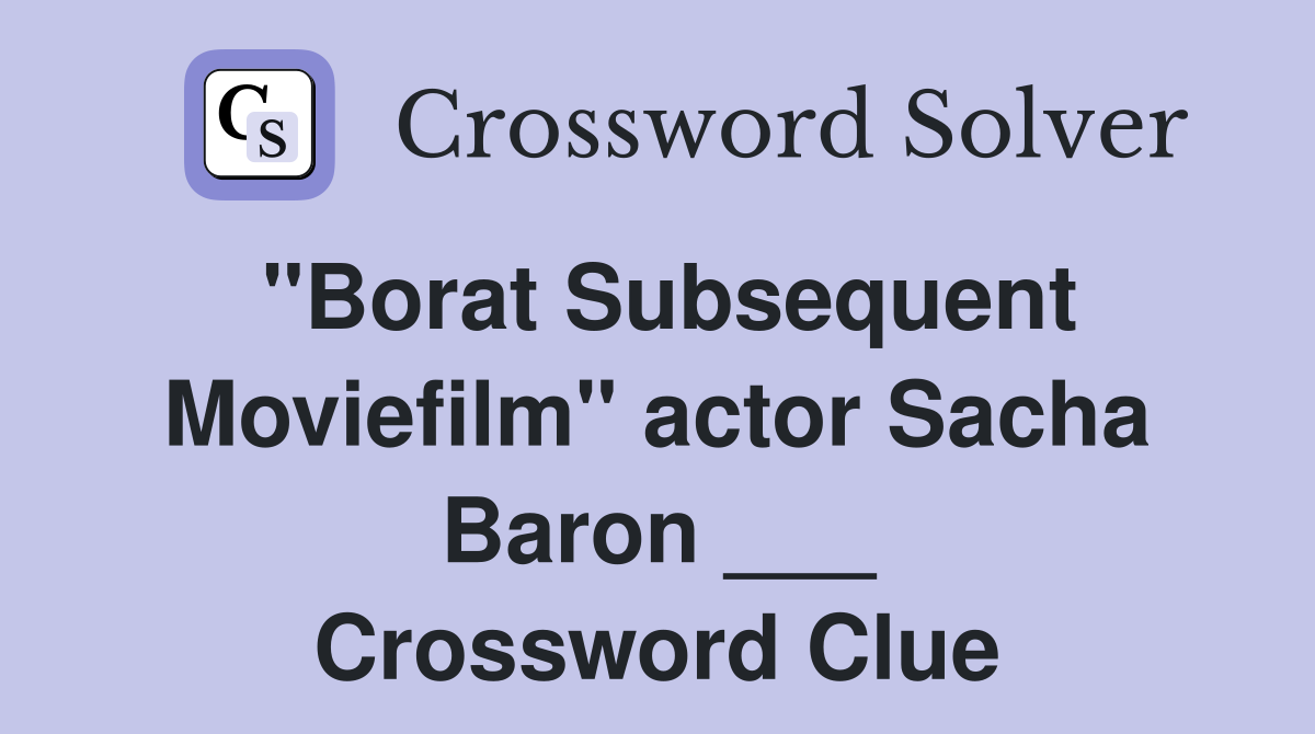 quot Borat Subsequent Moviefilm quot actor Sacha Baron Crossword Clue