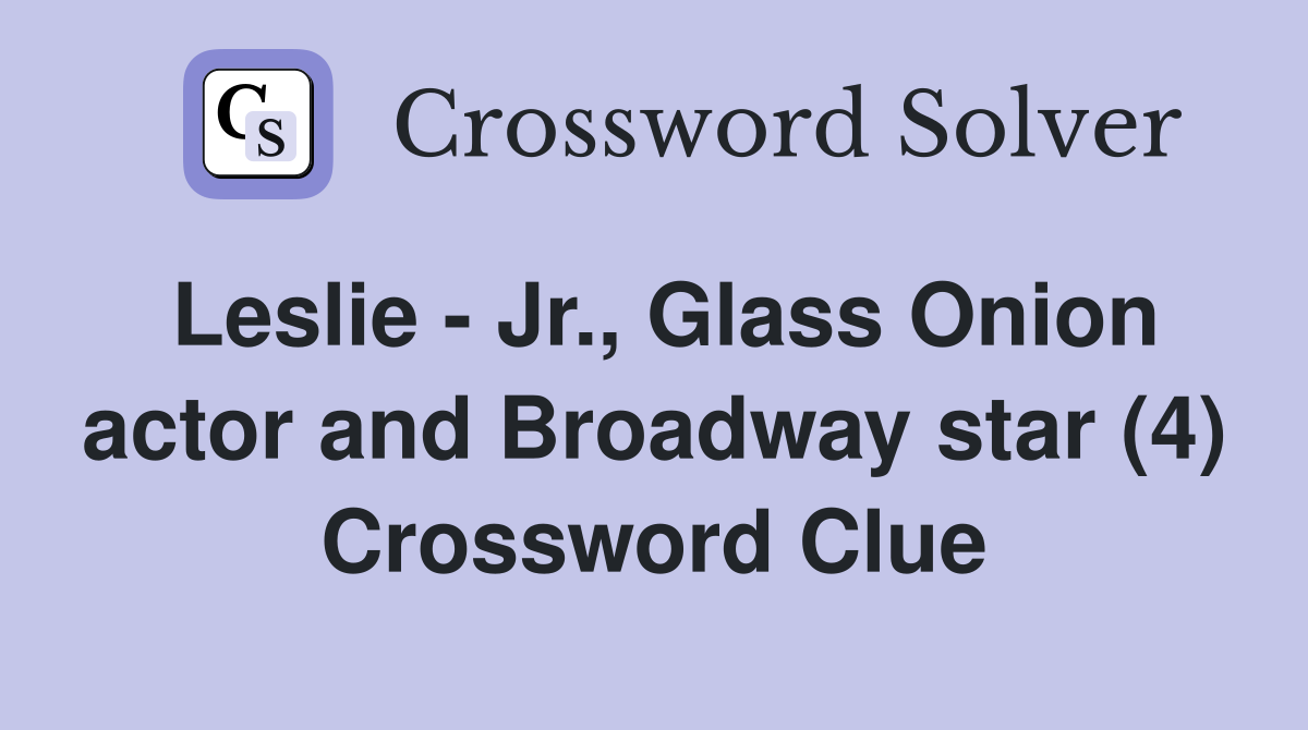 Leslie Jr Glass Onion actor and Broadway star (4) Crossword Clue