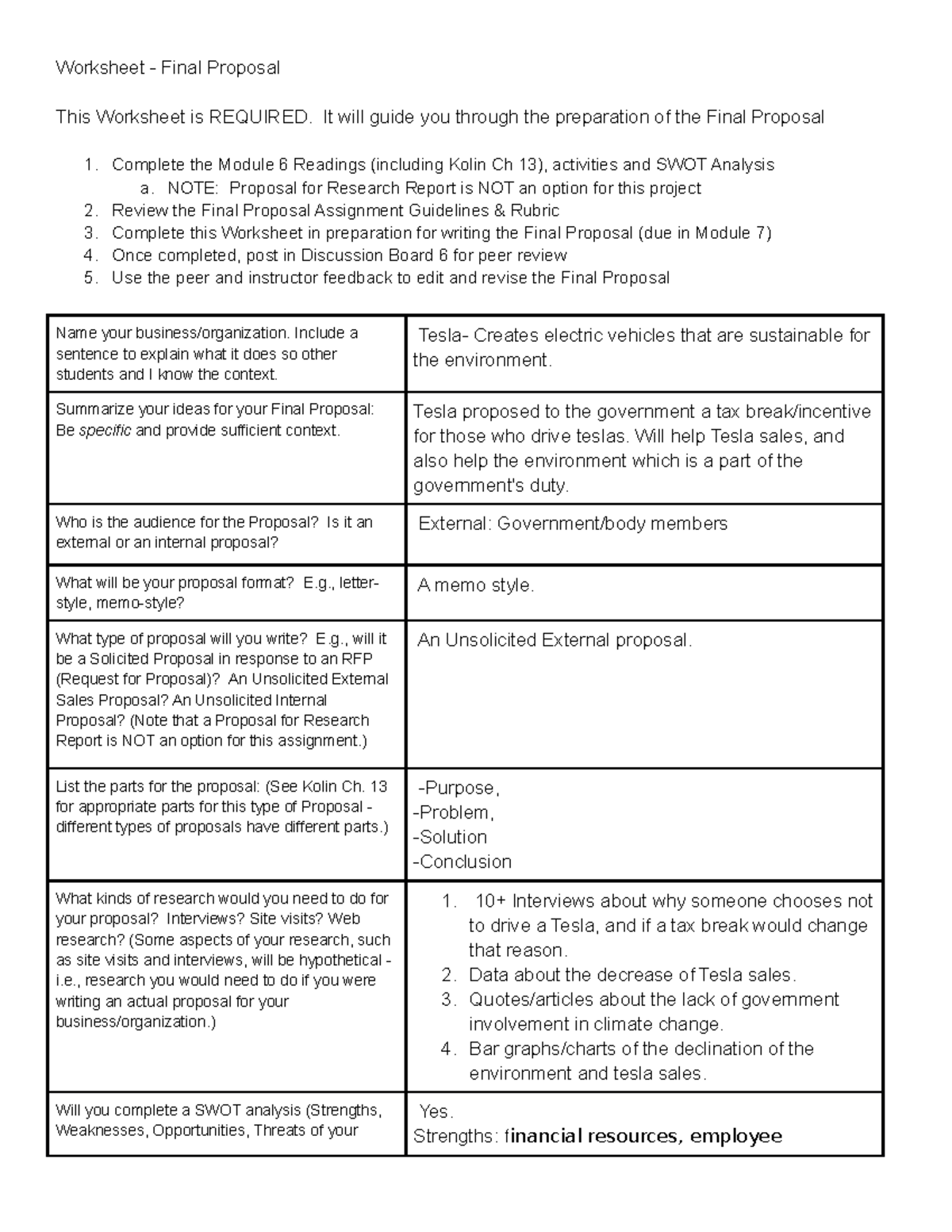 Final Proposal tesla Worksheet Final Proposal This Worksheet is