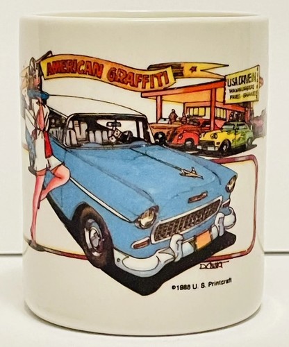 American Graffiti Drive in Hot Rods ceramic mug 1988 U S Printcraft
