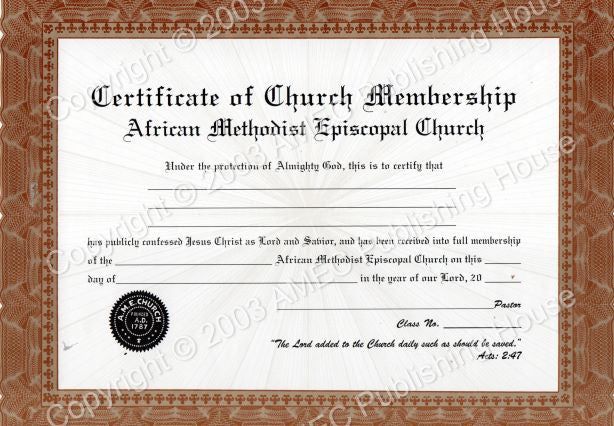 AME Certificate of Church Membership Spirit Filled Christian Bookstore