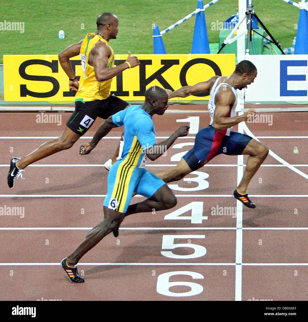 US American sprinter Tyson(R) crosses the finish line to win the