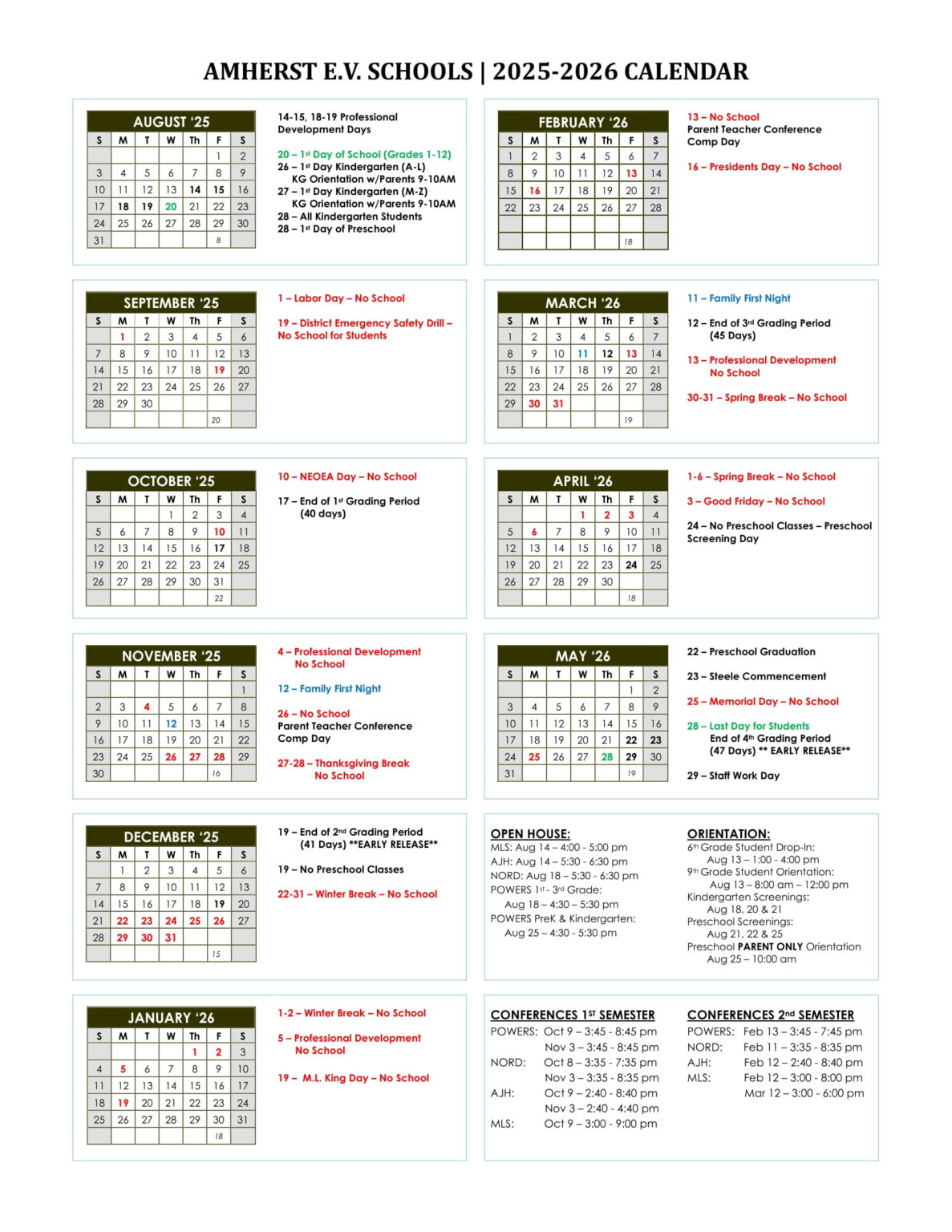 Amherst Exempted Village Schools Calendar 25 26 Revised PDF EduCounty