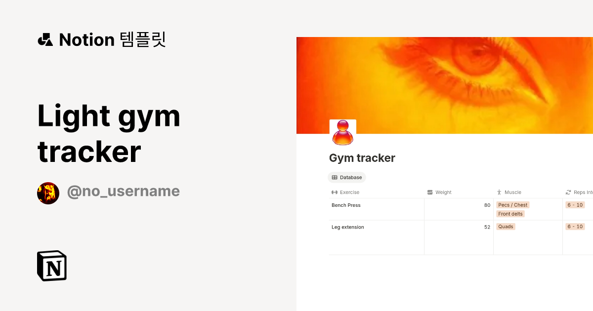 Light gym tracker 템플릿 제작자 no username Notion (노션) 마켓플레이스