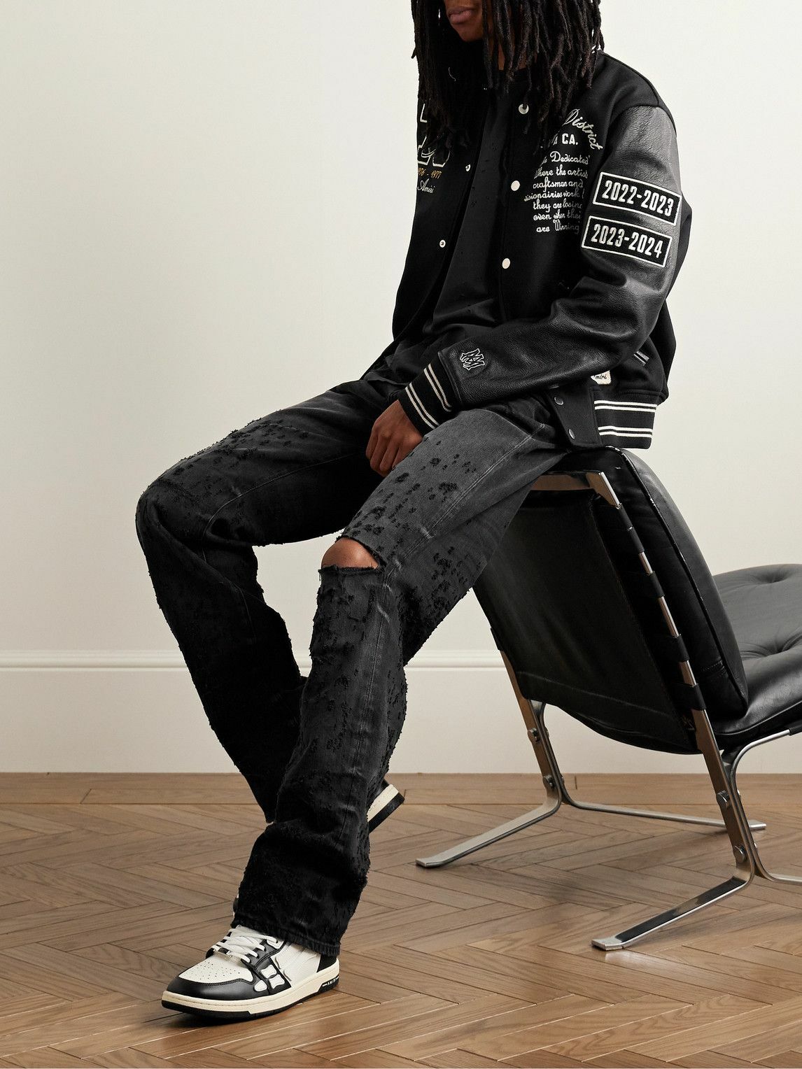 AMIRI Appliquéd Embroidered Leather and Melton Wool Blend Varsity