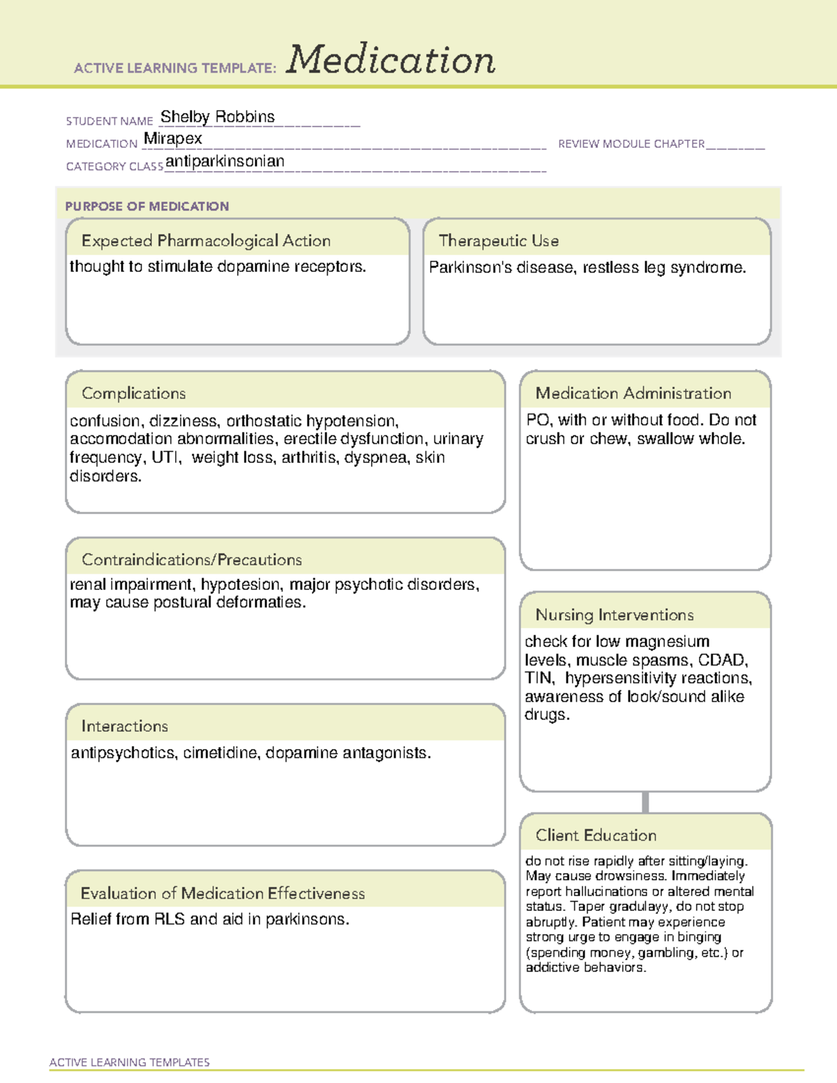 Med pass #8 medication template ACTIVE LEARNING TEMPLATES