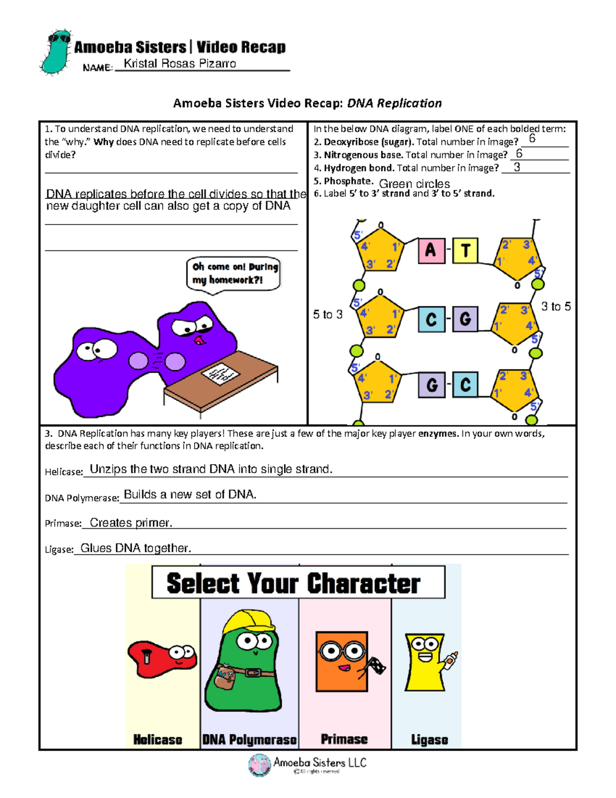 Amoeba Sisters Dna Replication Worksheets