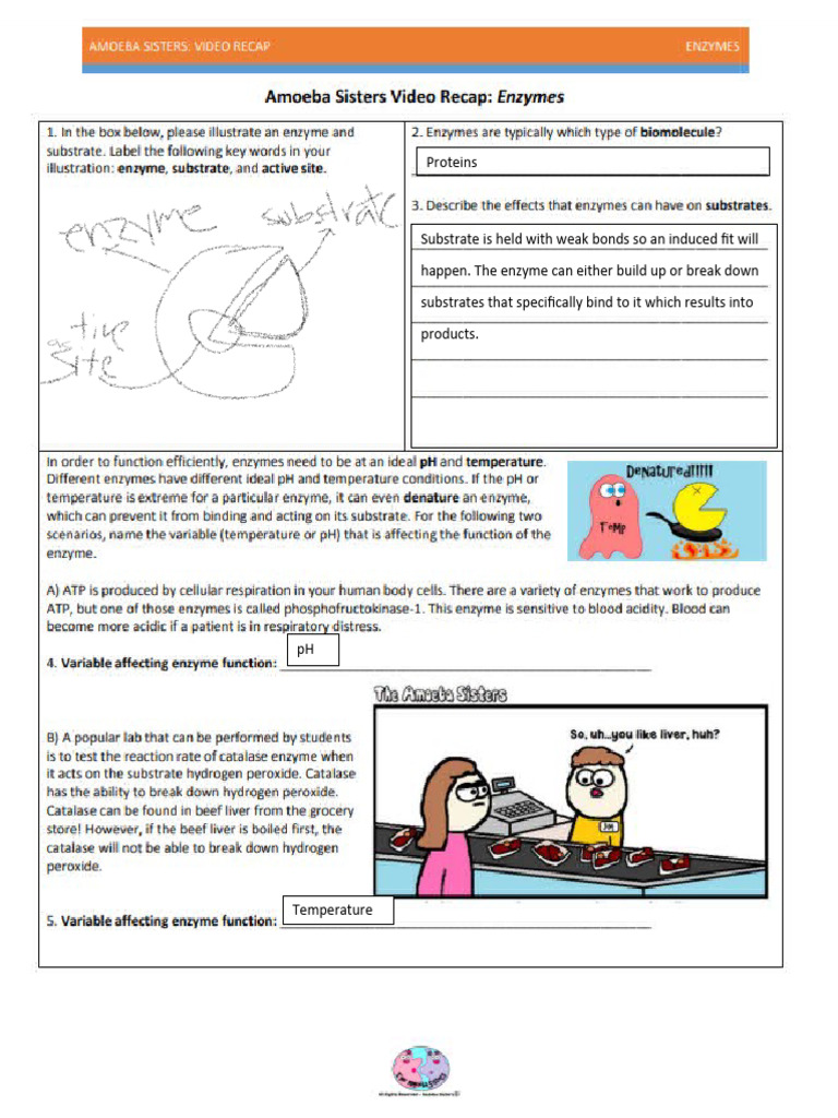 Amoeba Sisters Enzymes Worksheet Educational Printable Activities