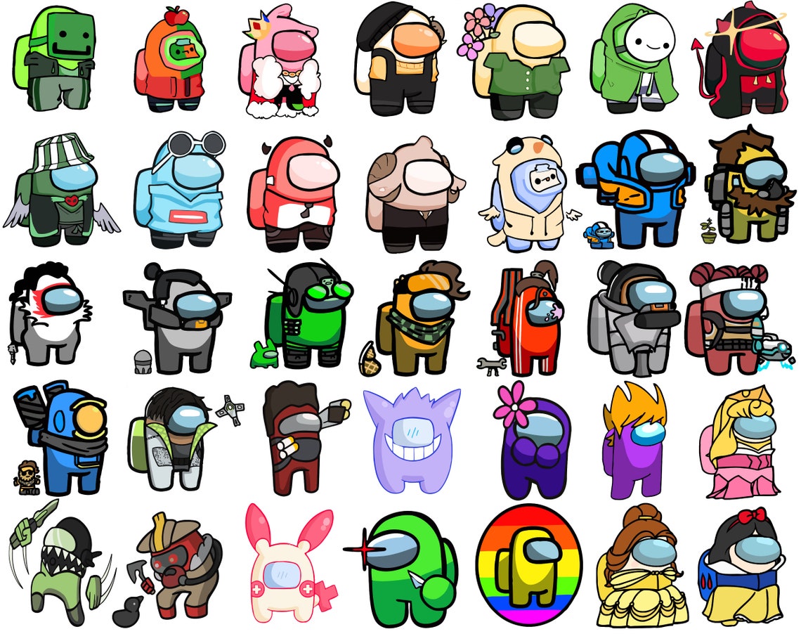Cute Bundle of Among Us Cartoon Characters PNG Among Us Impostor PNG
