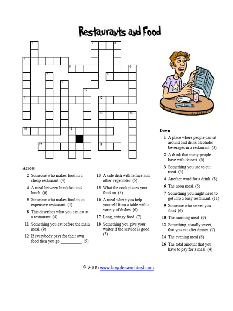 Restaurant Crossword PDF Meal Food And Drink Preparation