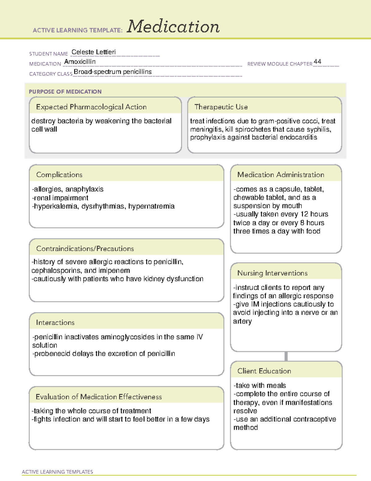 Amoxicillin Medication template for exam ACTIVE LEARNING TEMPLATES
