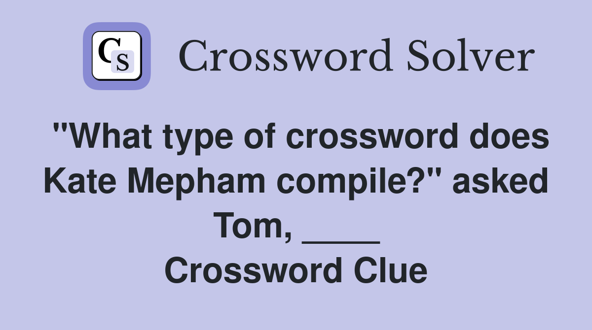 quot What type of crossword does Kate Mepham compile? quot asked Tom