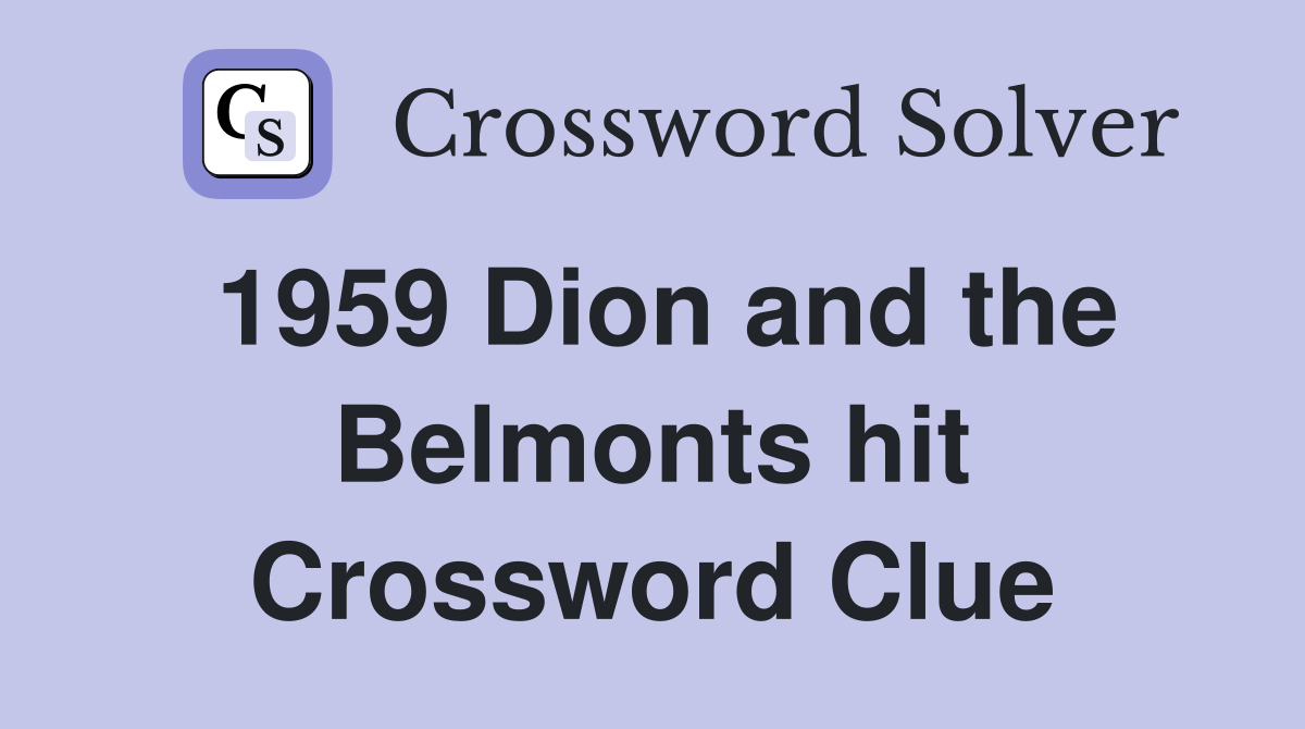 1959 Dion and the Belmonts hit Crossword Clue Answers Crossword Solver