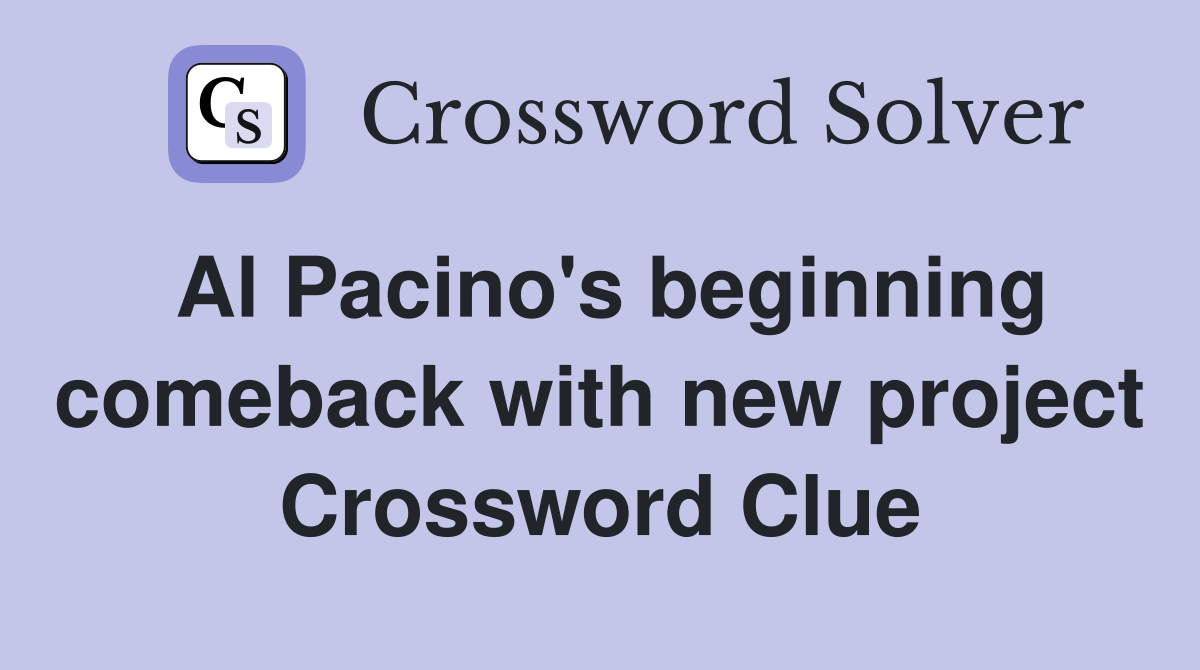 Al Pacino #39 s beginning comeback with new project Crossword Clue