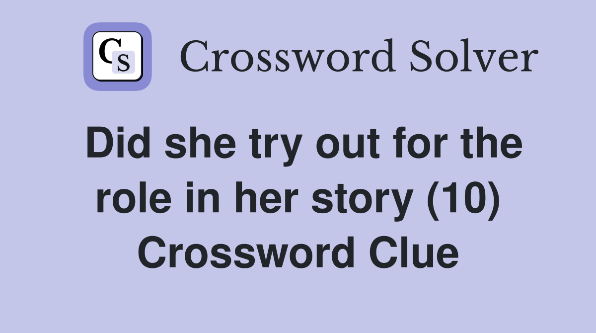 Did she try out for the role in her story (10) Crossword Clue Answers