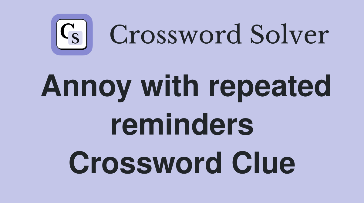 Annoy with repeated reminders Crossword Clue Answers Crossword Solver