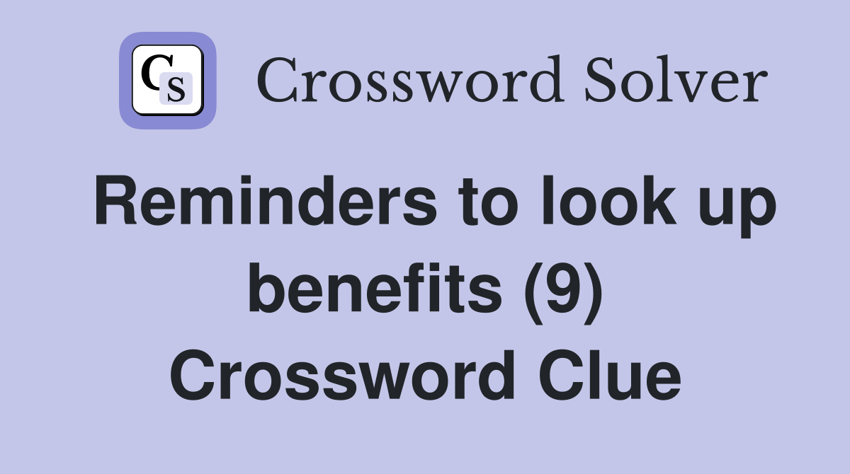 Reminders to look up benefits (9) Crossword Clue Answers Crossword