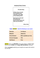 KS3 Intro to Analysing Poetry Worksheet Teaching Resources
