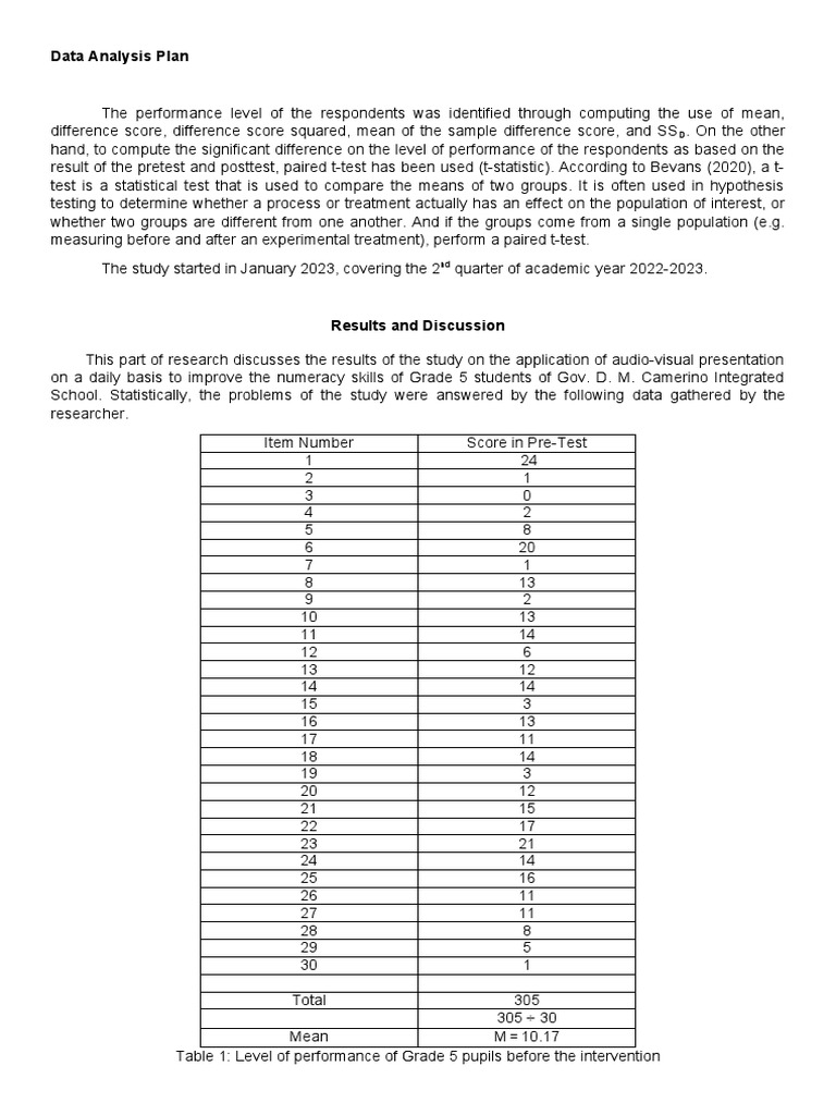 Data Analysis Plan PDF Student s T Test Statistics