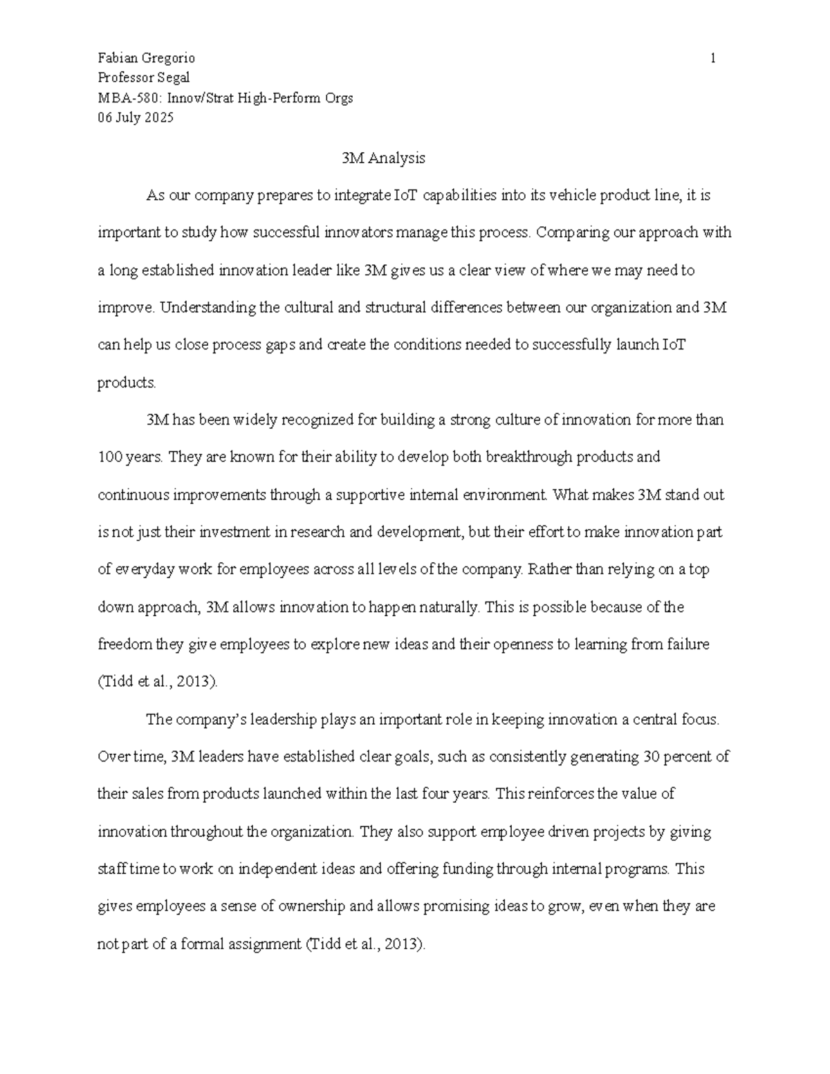 MBA 580 Case Study: Analyzing 3M #39 s Innovation Strategies Studocu