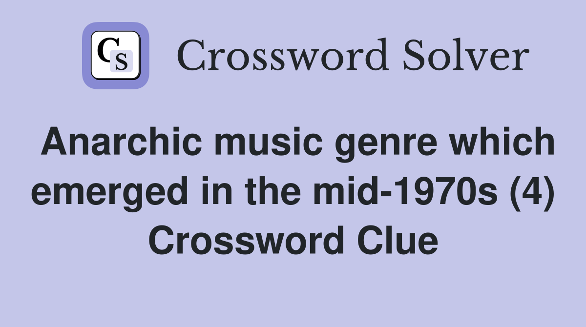 Anarchic music genre which emerged in the mid 1970s (4) Crossword