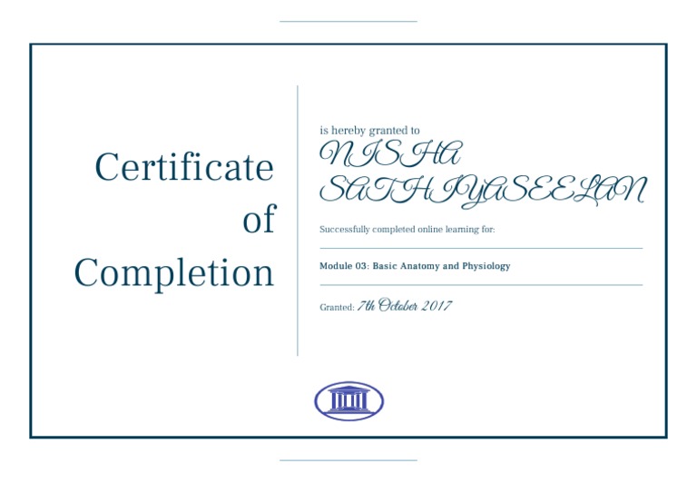 Certificate For Module Basic Anatomy and Physiology 07102017 PDF