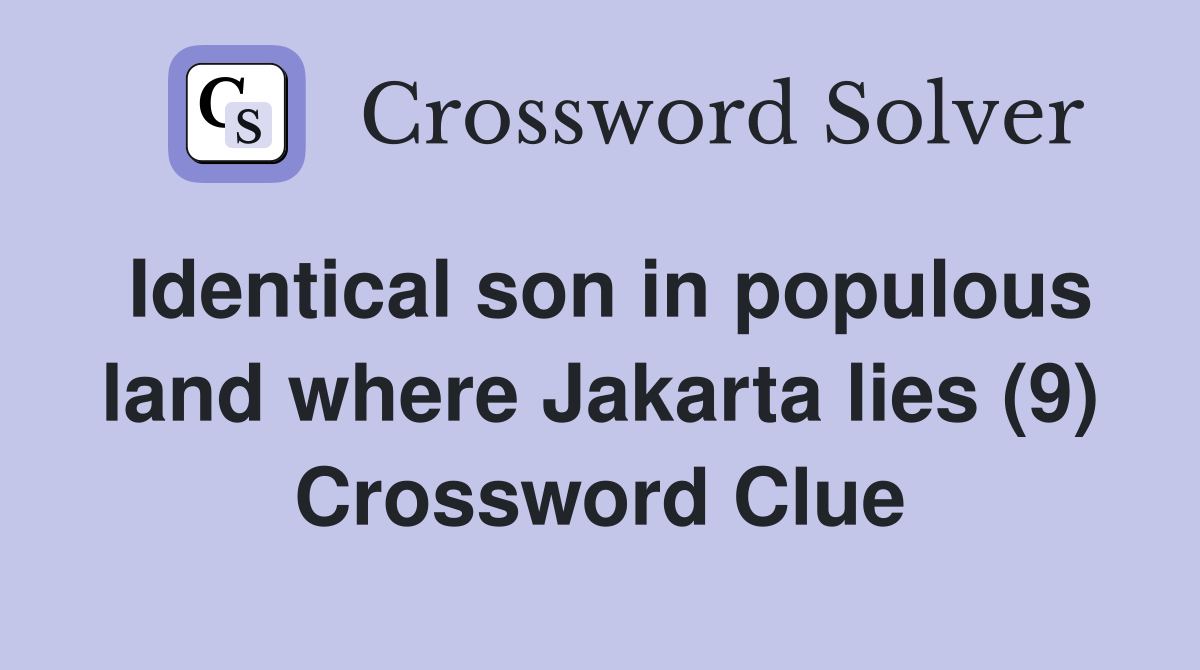 Identical son in populous land where Jakarta lies (9) Crossword Clue