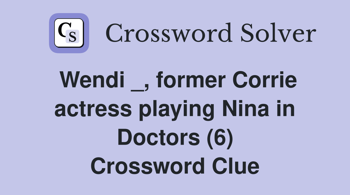 Wendi former Corrie actress playing Nina in Doctors (6) Crossword