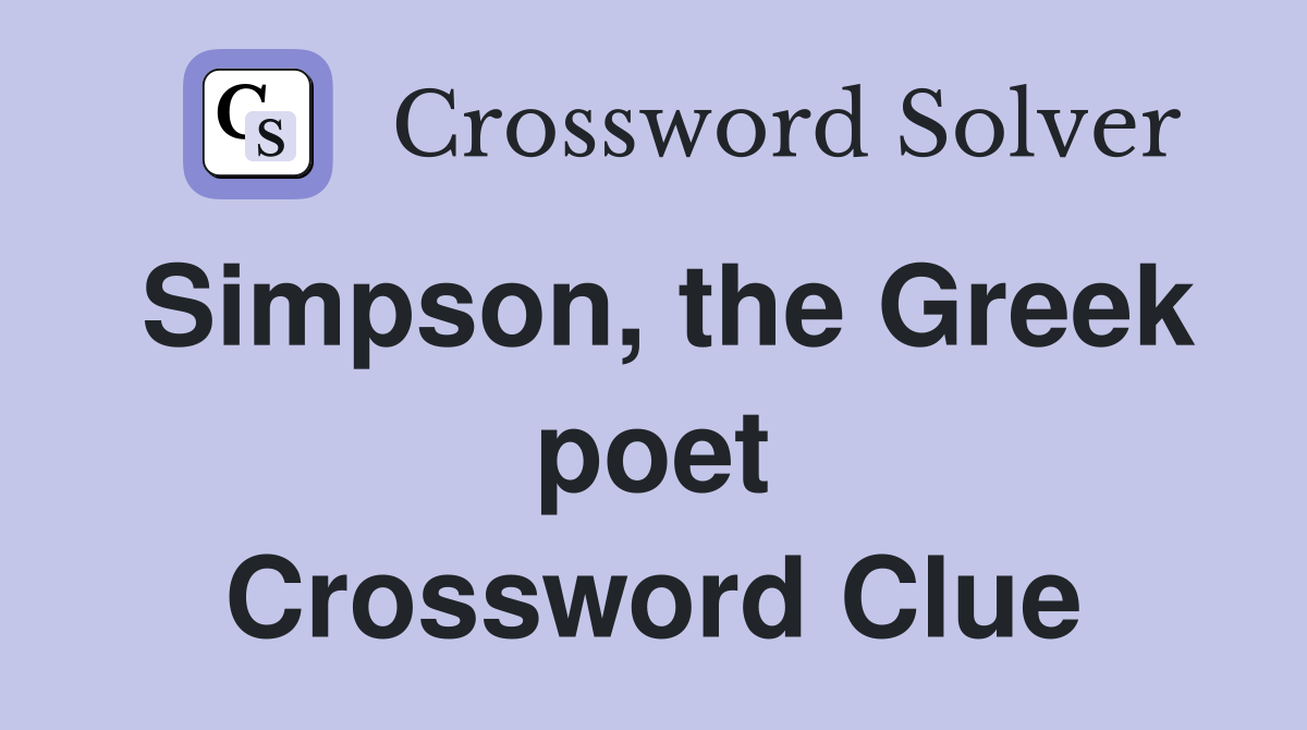 Simpson the Greek poet Crossword Clue Answers Crossword Solver