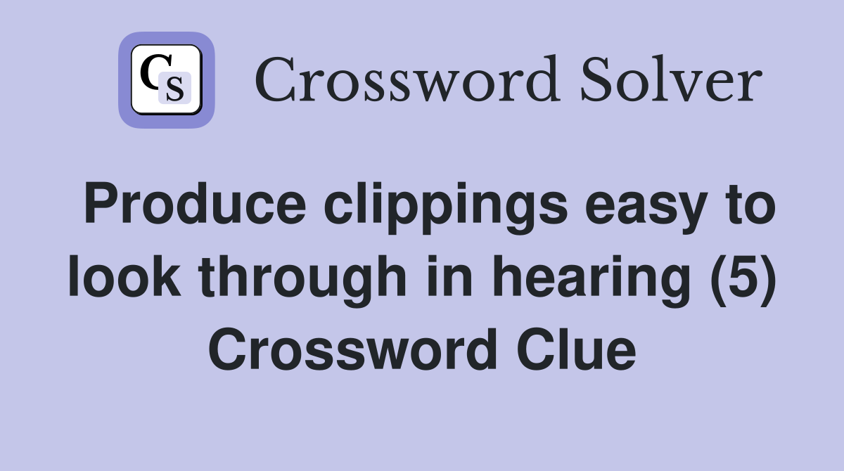 Produce clippings easy to look through in hearing (5) Crossword Clue