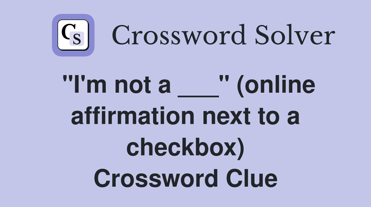 quot I #39 m not a quot (online affirmation next to a checkbox) Crossword