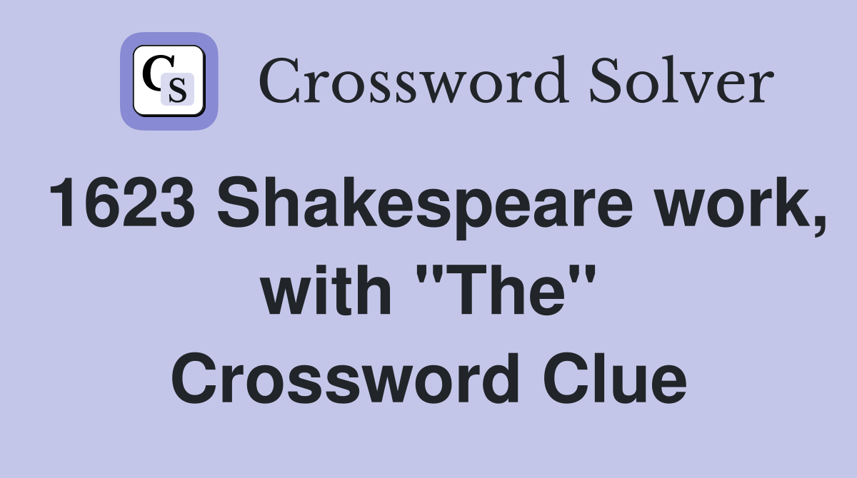 1623 Shakespeare work with quot The quot Crossword Clue Answers Crossword