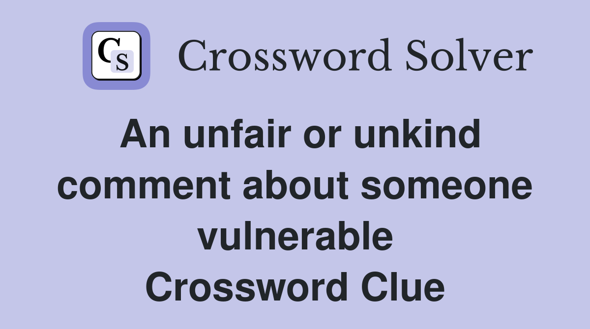 An unfair or unkind comment about someone vulnerable Crossword Clue
