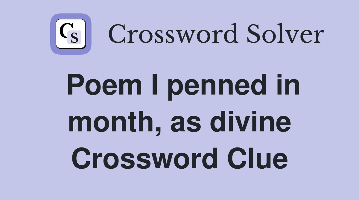 Poem I penned in month as divine Crossword Clue Answers Crossword