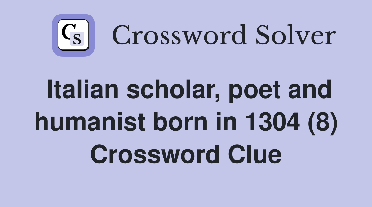 Italian scholar poet and humanist born in 1304 (8) Crossword Clue
