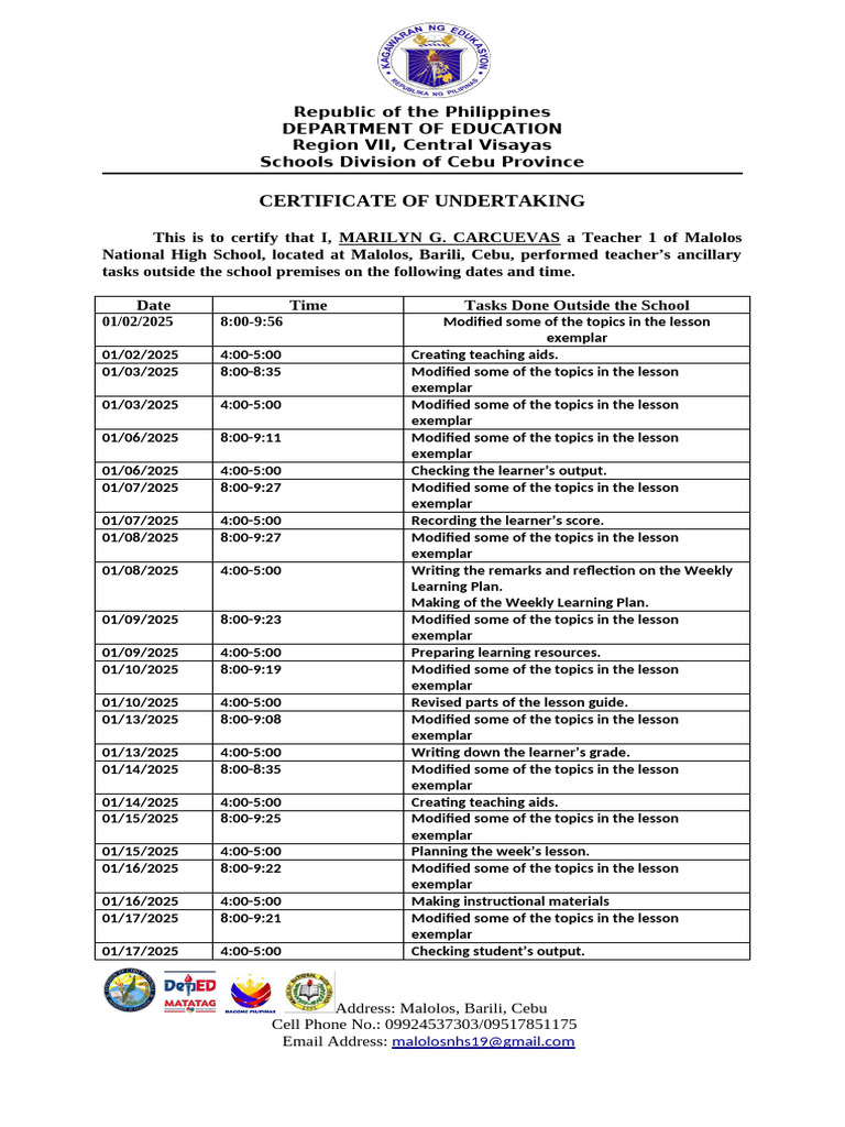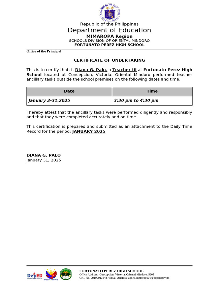 Teachers Certificate of Undertaking PDF Cognition Teaching