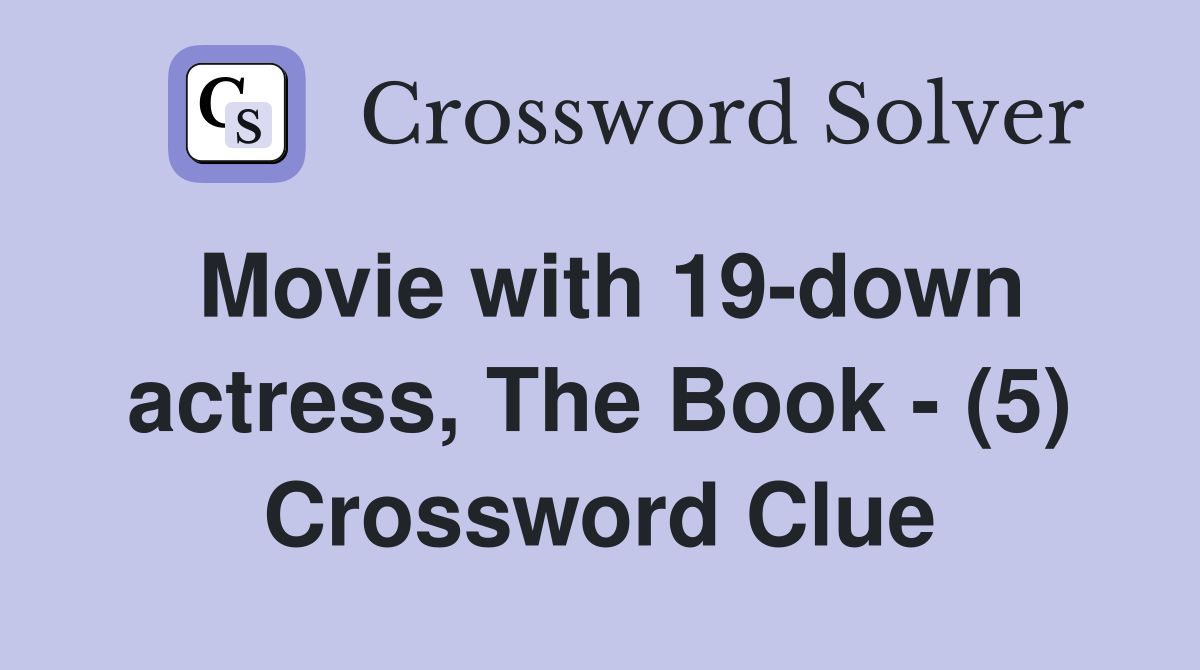 Movie with 19 down actress The Book (5) Crossword Clue Answers