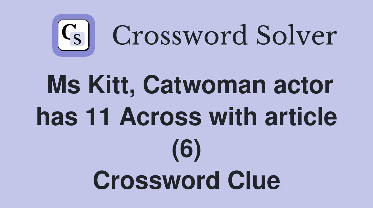 Ms Kitt Catwoman actor has 11 Across with article (6) Crossword Clue