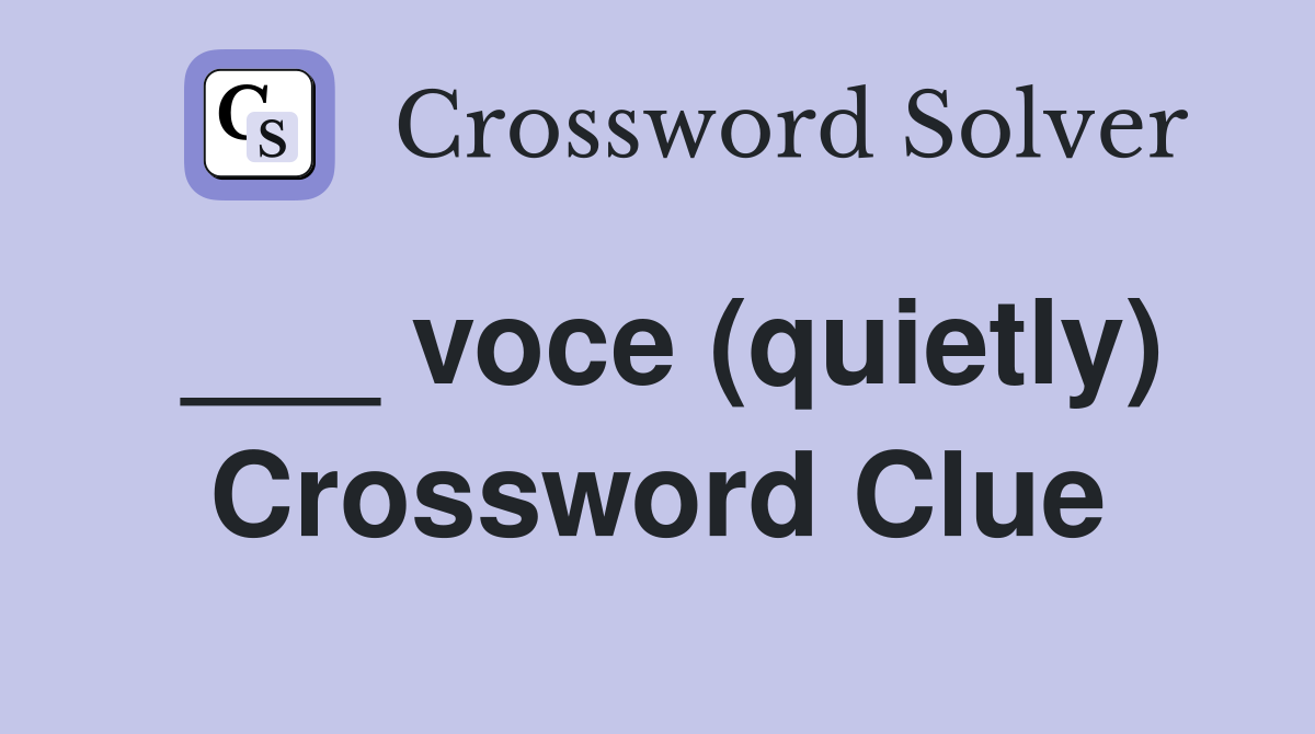 voce (quietly) Crossword Clue Answers Crossword Solver