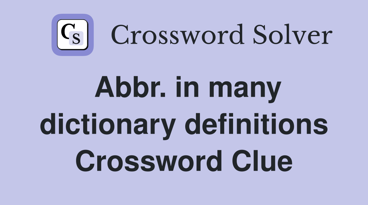 Abbr in many dictionary definitions Crossword Clue Answers